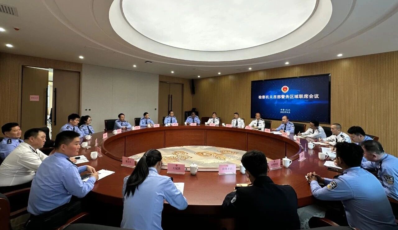 期间召开的联席会议邀请江苏省检察院法警总队负责人,现场介绍办案区“赋星”分级管理与智慧警务建设的先进经验,为西部区域推进办案区规范化、精细化和智能化管理提供了有益参考。参会各单位司法警察总队分别介绍了今年前三季度工作开展情况,重点围绕履职阵地建设、融入检察办案、年度培训考核等工作,就司法警察编队管理、警务履职和警衔审核中存在的问题进行了探讨交流,并提出了工作意见建议。