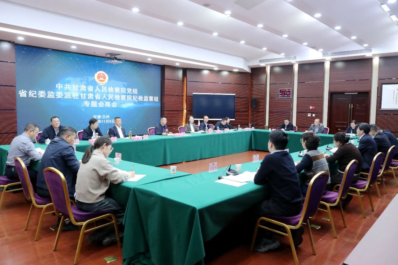11月5日下午,甘肃省检察院党组与省纪委监委派驻省检察院纪检监察组召开专题会商会,围绕检察人员违纪违法典型案件,深刻反思全省检察机关落实党风廉政建设责任制存在的不足,持续深化全面从严治检。省检察院党组书记、检察长沈涧主持会议并讲话,省检察院党组成员、驻院纪检监察组组长王飞命通报有关案件情况,并提出加强党风廉政建设全面深化从严治检的建议,省检察院党组成员、驻院纪检监察组全体成员参加会议。