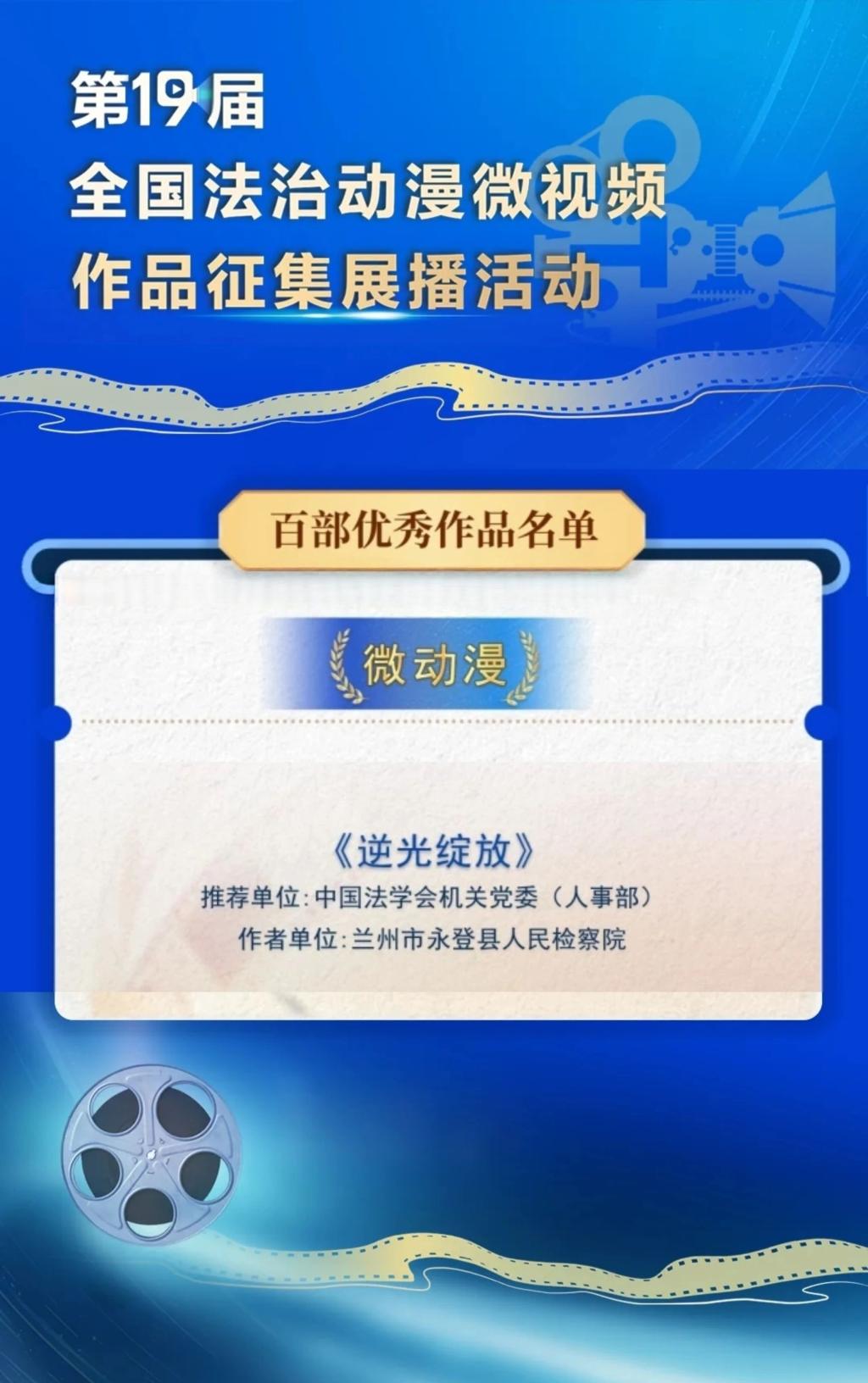 今年4月,中央宣传部、中央网信办、司法部、全国普法办印发通知,组织开展第十九届全国法治动漫微视频作品征集展播活动。活动共收到32个地方司法厅(局)、53个部门、单位报送的微电影、微动漫、微短剧、宣传片、微视频、纪录片等6类1760余件作品。“全国法治动漫微视频作品征集展播活动”始于2003年,已成为覆盖面广、参与度高、社会影响力强的法治文化建设重要载体,有力促进了社会主义法治文化传播和公民法治素养提升。其中,兰州市永登县检察院创作的微动漫《逆光绽放》入选百部优秀作品。