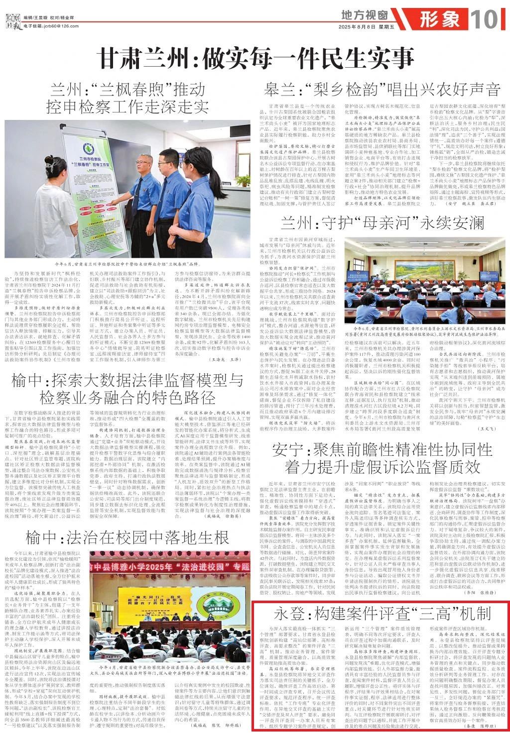 2025年8月8日,检察日报地方视窗《甘肃兰州:做实每一件民生实事》专版刊发《永登:构建案件评查“三高”机制》。