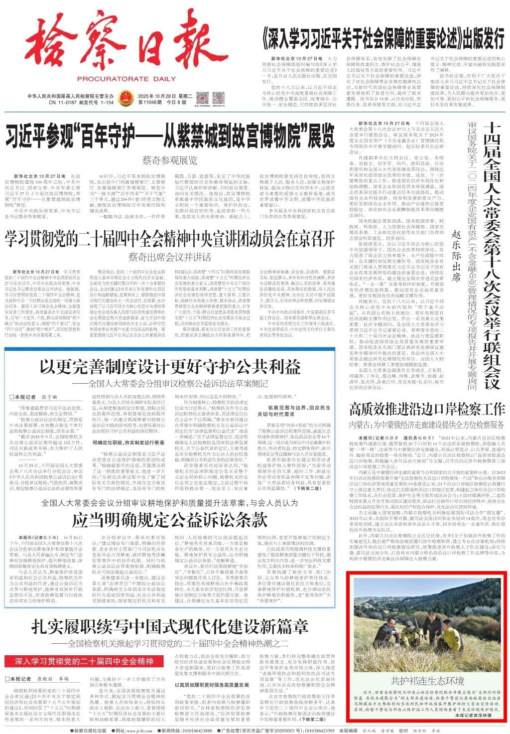 2025年10月28日,检察日报头版刊发《共护祁连生态环境》。
