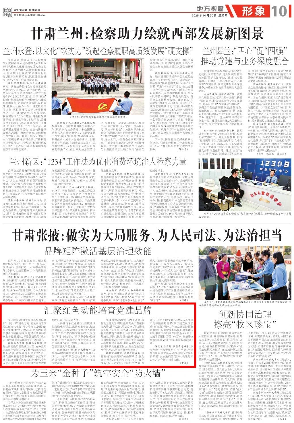 2025年10月30日,检察日报地方视窗《甘肃张掖:做实为大局服务、为人民司法、为法治担当》专版刊发《汇聚红色动能培育党建品牌》。